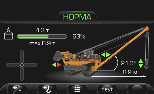 | Система защиты от перегрузки и опрокидывания позволяет оператору определять, с какими нагрузками он может безопасно работать на конкретном склоне. | ![]() |